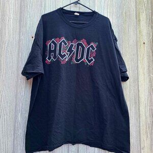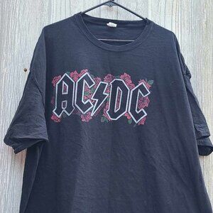 AC/DC Band Logo Men's Black T-SHIRT 3XL Red Roses
