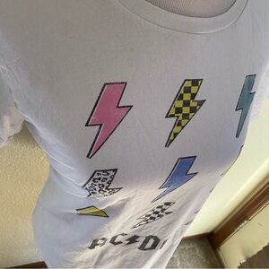 AC/DC Band Tee Shirt Cotton White Short Sleeve Printed 100% Cotton: Medium