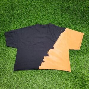 ACDC CROP TOP, HIGH VOLTAGE ROCK SHIRT, WOMENS TWO-TONE TEE, BLACK ORANGE TIE-DYE SHIRT, ROCK N ROLL FASHION, ACDC TIE-DYE SHIRT, LARGE ROCK CROP TOP, WOMENS BAND TEE LARGE, ACDC GRAPHIC SHIRT, RETRO ROCK STYLE
