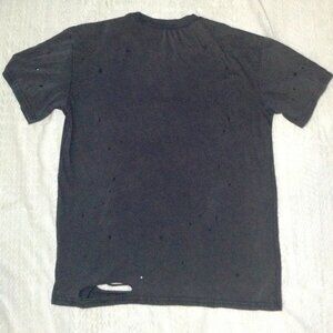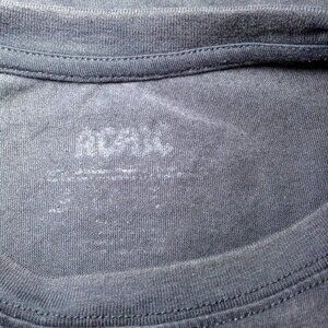 AC/DC Distressed Tee; Ladies S - M; High Voltage, Groupie Chic, Roadie, Sequins! Worn 1 time; RN14981; Shoulders: 20", Pit-pit: 21", Length: 24". No visible signs of wear; the tee is "Heathered" with a "worn" look. Gently pre-loved with original rips and tears. Cotton/Poly Blend