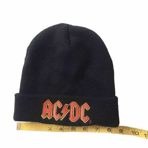 AC/DC Embroidered Logo Men's Black Knit Beanie Stocking Toque Hat Lid OSFM EUC