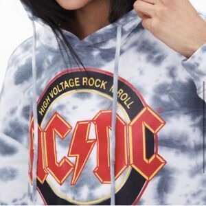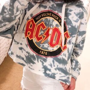 AC/DC Grey Cropped Tie Dye Hoodie size medium. Brand new with tag, no flaws. Raw hem.