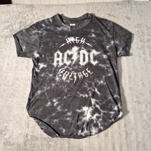 AC/DC High Voltage Graphic Gray Tie Dye T-Shirt Size Medium Black White