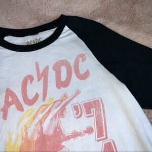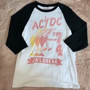 AC/DC Jailbreak 74 Graphic Band White & Black Raglan Top Women's Size Small