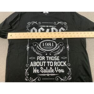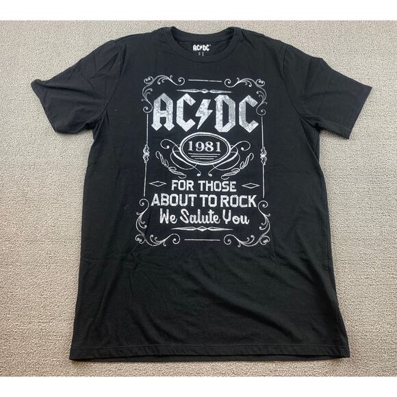Classic AC/DC black graphic t-shirt featuring “For Those About To Rock We Salute You 1981” design. Officially licensed band merchandise.