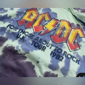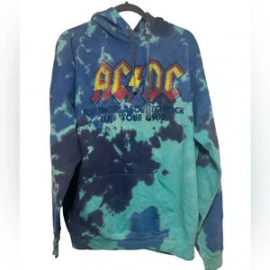 AC/DC Mens Hoodie Multi Colored Tie Dye Distressed 1982 UK Tour Sweatshirt Size Medium NWOT excellent condition Oversized