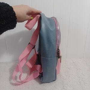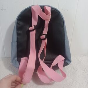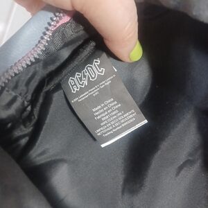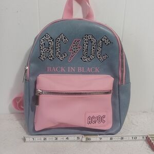 AC/DC Back in Black, mini blue and lighy pink backpack.