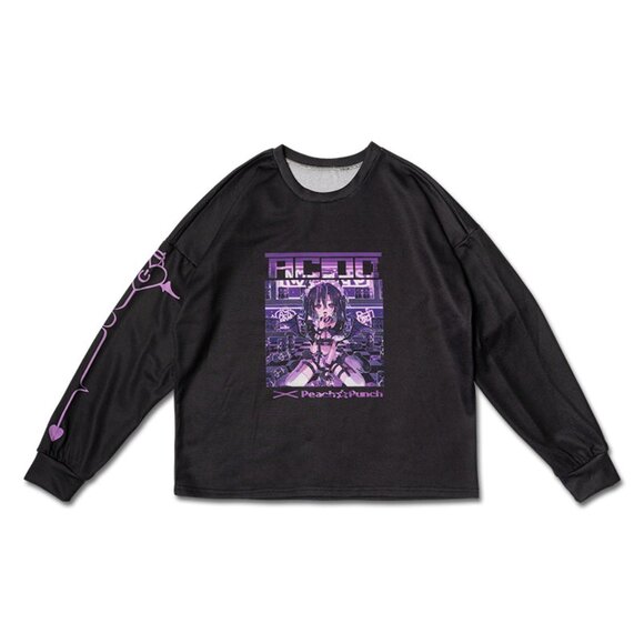 Seductive, fierce, and unapologetically devilish cute. The Peach Punch Addictive Akuma Long Sleeves Tee from ACDC Rag will turns those heads and breaks their hearts. This digital succubus rave t-shirt features an anime succubus print on black color polyester base, crew neckline, long sleeves, and unisex oversized fitting. This Peach Punch Addictive Akuma Long Sleeves Tee came straight from the streets of Harajuku, Japan. If you love it, don't hesitate. Get it before it's gone. #HarajukuLove