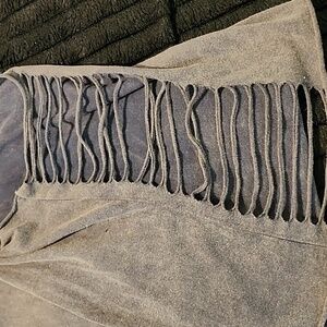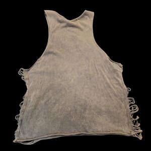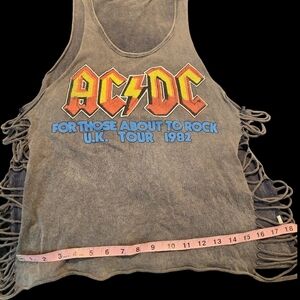 Never been worn asphalt gray colored tank top with open fringe sides. Features the band, ACDC "For those about to Rock 1982" UK tour in graphics on front. Size Small. All measurements in photos. Would look great over a bikini or a bathing suit.