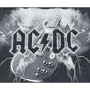 AC/DC T-Shirt Black Mens XL Classic Rock Band Logo Guitar Lightning Graphic Tee. Item is distressed but solid.
