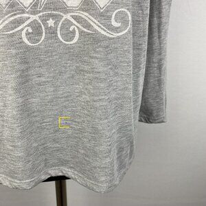 Appears to be a dye anomaly in material on front by bottom hem a little off middle (Pics #3-4), and appears to be a similar dye anomaly off right side of front graphic by armpit of front of right sleeve (Pics #5-6) – Might be other similar dye anomalies in material, but these two seem to be the most prominent.