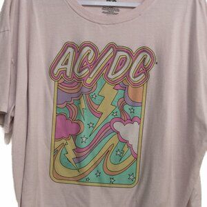 AC/DC Womens Pink T Shirt Pastel Graphic Round Neck Pullover Short Sleeve XXL