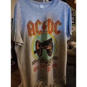 This rare AC/DC T-shirt is perfect for any rock fan. Featuring the iconic band's logo and the phrase "For Those About to Rock," this shirt is sure to make a statement. The multicolor design is printed on a comfortable and durable cotton material, making it ideal for all seasons. The shirt has a crew neck and short sleeves, and is machine washable for easy care. With its preshrunk fabric, this shirt maintains its shape and color after washing.
