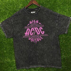 Rock your style with this vintage AC/DC, high voltage T-shirt. Acid washed, black, and in size XL, it measures 22 inches pit to pit, 28 inches in length.