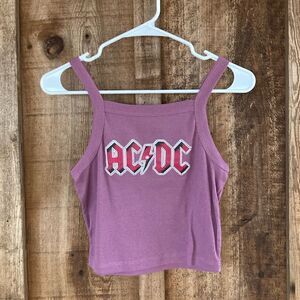 ACDC Graphic Ribbed Knit Square Neck Purple Cropped Cami Tank-top