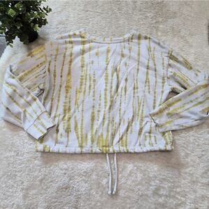AC/DC White and Green Cropped Front Tie Crew Neck Sweatshirt, Size Medium