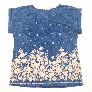 ACE Fashion blue/tan floral top Size M Pit to pit - 21 inches Length - 26 1/2 inches Good pre owned condition (has several snags)