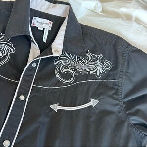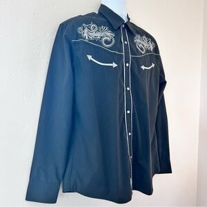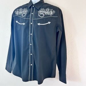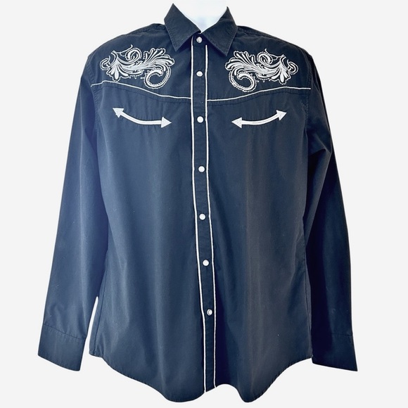 Stylish black western shirt featuring intricate embroidery. Perfect for a classic and bold look.