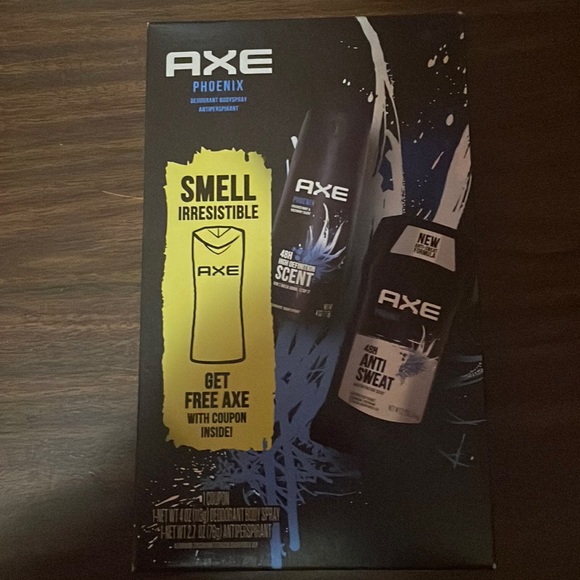 I have two Axe Phoenix gift sets. Never been opened and is brand new. Each set includes one coupon, one 4 oz deodorant body spray, and one 2.7 oz antiperspirant.