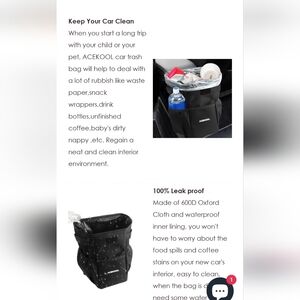 When you start a long trip with your child or your pet, ACEKOOL car trash bag will help to deal with a lot of rubbish like waste paper,snack wrappers,drink bottles,unfinished coffee,baby's dirty nappy ,etc. Regain a neat and clean interior environment
