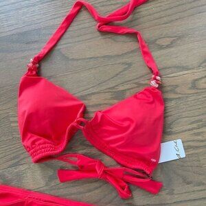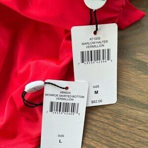 A.CHE Marlow Halter Monroe Skirted Bottom Swimsuit Bikini Vermillion M /L $122