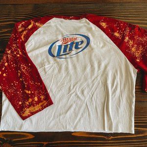 Custom-cut, Cropped top, white baseball top with burgundy sleeves and orange-creme drips