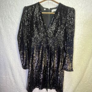 A.C.L. Black Mara Sequined Strong Shoulder Long Sleeve Mini Dress Size 4
