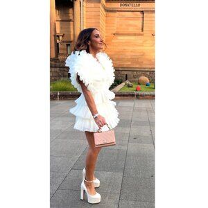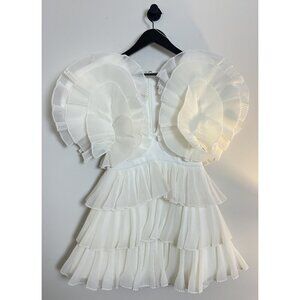 ACLER Spenmoss Pleated Ruffle Minidress in Ivory Size US 4