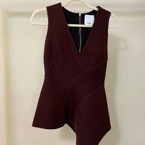 ACLER / maroon structured knit tank top Asymmetric red v neck top