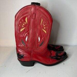 ACME Rare Vintage Red Black Shorty Cowgirl Cowboy Western Boots Women’s Size 7.5
