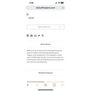 ACME writing instruments are distinguished by the works of modern and contemporary designers. "Taeguk" is by Young Se Kim. This rollerball is fitted with an ACME black ink refill. It can be converted into a fountain pen with an ACME fountain pen conversion unit, which is sold separately.