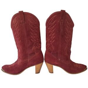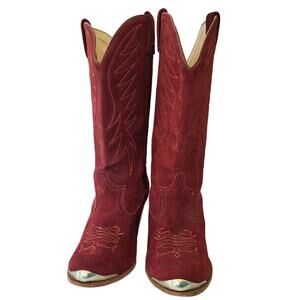 ACME Vintage Burgundy Red Suede Cowboy Boot Size 10 Cowboy Western