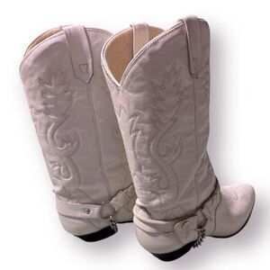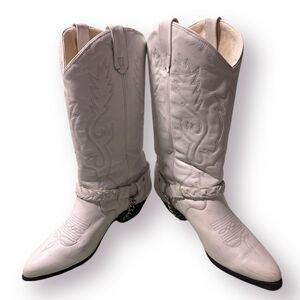 ACME White Knee High Cowboy Heeled Boots Size 6.5 M Vintage 80s Western w/ Box