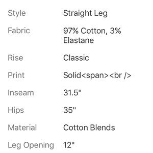 Leg Type: Straight