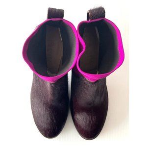 ACNE Purple Calf Hair Ankle Booties, Size 8 (US) 38 (EU)