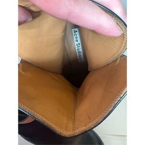 ACNE STUDIOS, BOOTS, lodine high-heeled shoes, size 40 which per their website is a size 10 in US. Made in Italy! Great condition minor signs of wear. Boots with high heel 8.5 cm, leather, platform sole, iodine purs model, with brown straps. crafted from 100% Italian calf leather. They feature a round toe, a stacked heel, and a buckle closure at the side. Acne Studios is a luxury fashion house based in Stockholm, Sweden,