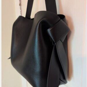 So, I scored the most coveted bag on the fashion scene 2025, the Acne Studio's MUSUBI MIDI shoulder bag. This bag is the epitome of contemporary elegance. Crafted by hand from soft 100% preferred calfskin, this Italian made beauty exudes understated sophistication. On each side the bag is adorned with twisted knots inspired by traditional Japanese Obi sashes. The MUSUBI MIDI additionally features an embossed logo, wide shoulder strap, interior zipper pocket compartment with branded lanyard. She's been authenticated. She's black. She's everything you could want in a high fashion bag. Get it here from me for pennies on the dollar.