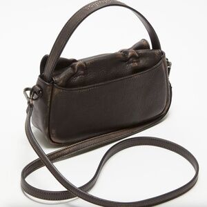 Multipocket micro bag is crafted from leather with a washed finish and laced knot details. Complete side flap pocket with a discrete magnetic closure and spacious interior. Includes a top handle and long strap.