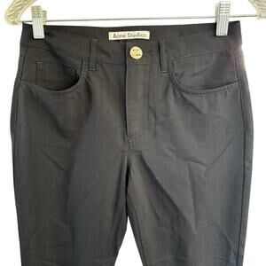Elevate your fashion game with these sleek Acne Studios Skin 5 jeans in a super skinny stretch denim. These black jeans feature a mid-rise waist, 5-pocket design, and a zip closure. The slim fit and stretch material provide a flattering and comfortable fit, perfect for any season.