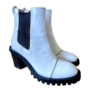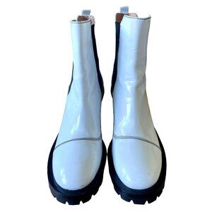 ACNE STUDIOS Womans 10 Patent LEATHER Chunky Lug Sole Ankle Boots White Round 40