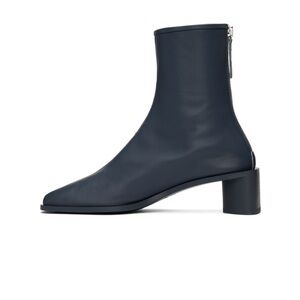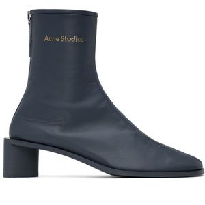 ACNE STUDIOS blue branded logo boots back zip mid calf sz 39 square heel bertine