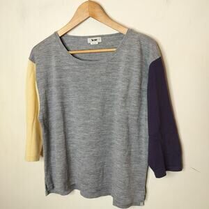 ACNE gray + colorblock sleeve merino wool sweater. Size XS. (23188)