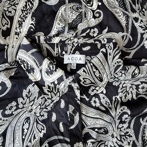 ACOA Black Paisley Tunic Top Women's Size L Long Sleeve Button-Up Blouse