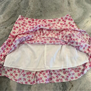mini skirt with liner, white with pink flowers , tiered ruffle, side zipper, new with tags attached