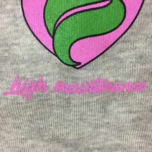ACOA Gray Pink Green 'HIGH MAINTENANCE' Print Drawstring Hem Cropped Shirt