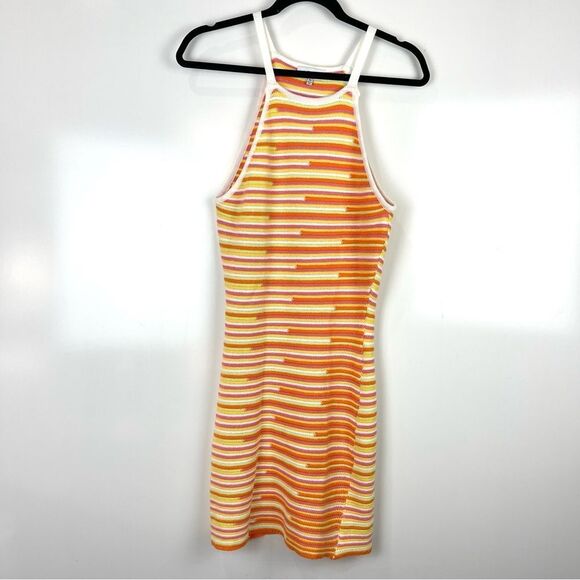 ACOA Orange Striped Knit Halter Mini Dress in size XL Women's