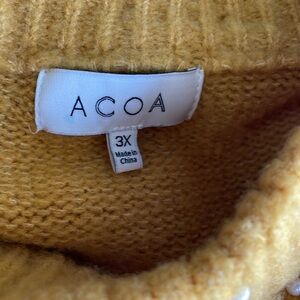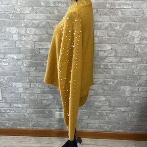 ACOA MUSTARD PUFF SLEEVE PEARL CHUNKY KNIT SWEATER Pearl neckline down puff sleeves Some pearls may be loose
