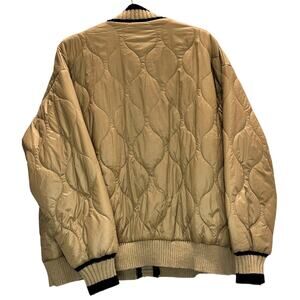 ACOA – Quilted Bomber Jacket – Tan/Black Mixed Media – Size Small