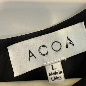 Elevate your wardrobe with this elegant black blouse from ACOA, featuring a stylish sheer panel across the top for a modern, sophisticated look. Crafted from lightweight fabric, this long-sleeve top is perfect for both casual and semi-formal occasions. Its flowing design ensures comfort and versatility, while the subtle button closure at the back adds a touch of refinement. Available in size L, this blouse is made in China from high-quality materials.