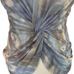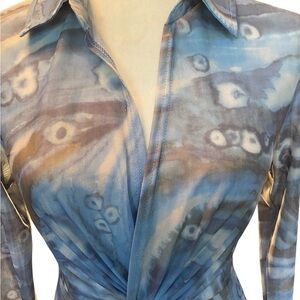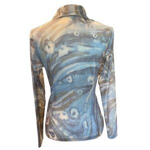 ACOA Womens Blue Marbled Mesh Long Sleeve Shirt Size Small Rave Clubbin